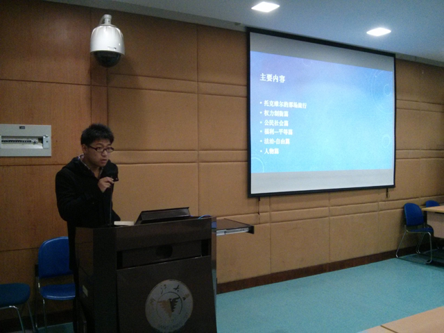 然后,第三小组上台展示了他们所读的书——《民主的细节》,它主要体现了“美式民主的细节和操作,它让我们收货的不只是政治学、历史学的精神和思考,更能理出为人处世的一种态度和方法”,是一本非常值得读的书。最后一组的同学向大家介绍的是一些以女权为主题的书目,如《向前一步》、《走出非洲》、《第二性》等书。通过现实生活中存在的一些不良现象,最后一组同学倡议“肯定男女差异”,“弱化教育在性别角色上的强化作用”等态度。