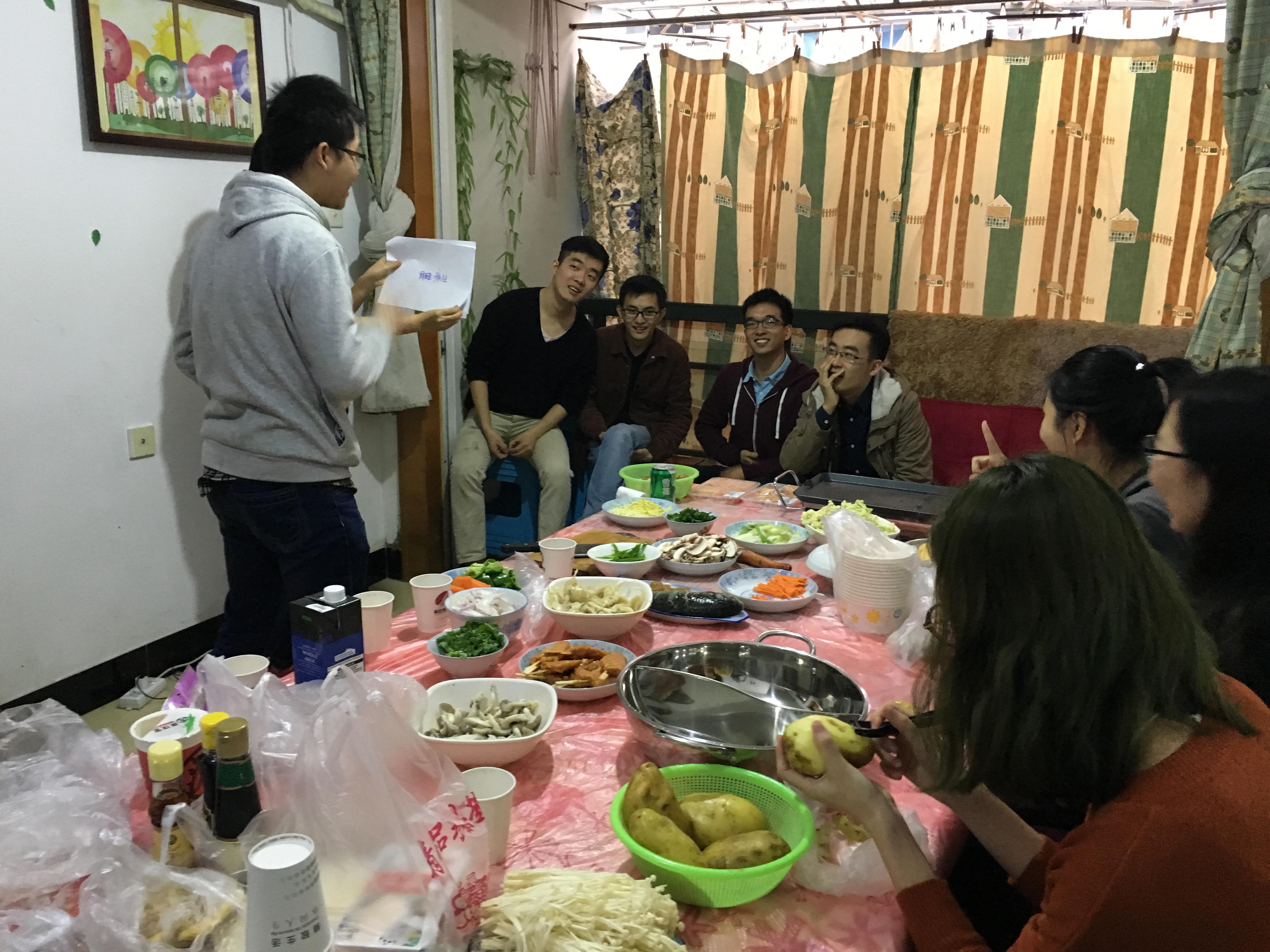 游戏结束后,大家开始自己动手做饭,体会毛主席“自己动手,丰衣足食”的口号。每人都做了一道家乡特色菜,并交流了这道菜背后的故事,大家相聚一起,来自五湖四海,然而一颗心却因“党”融为了一体。