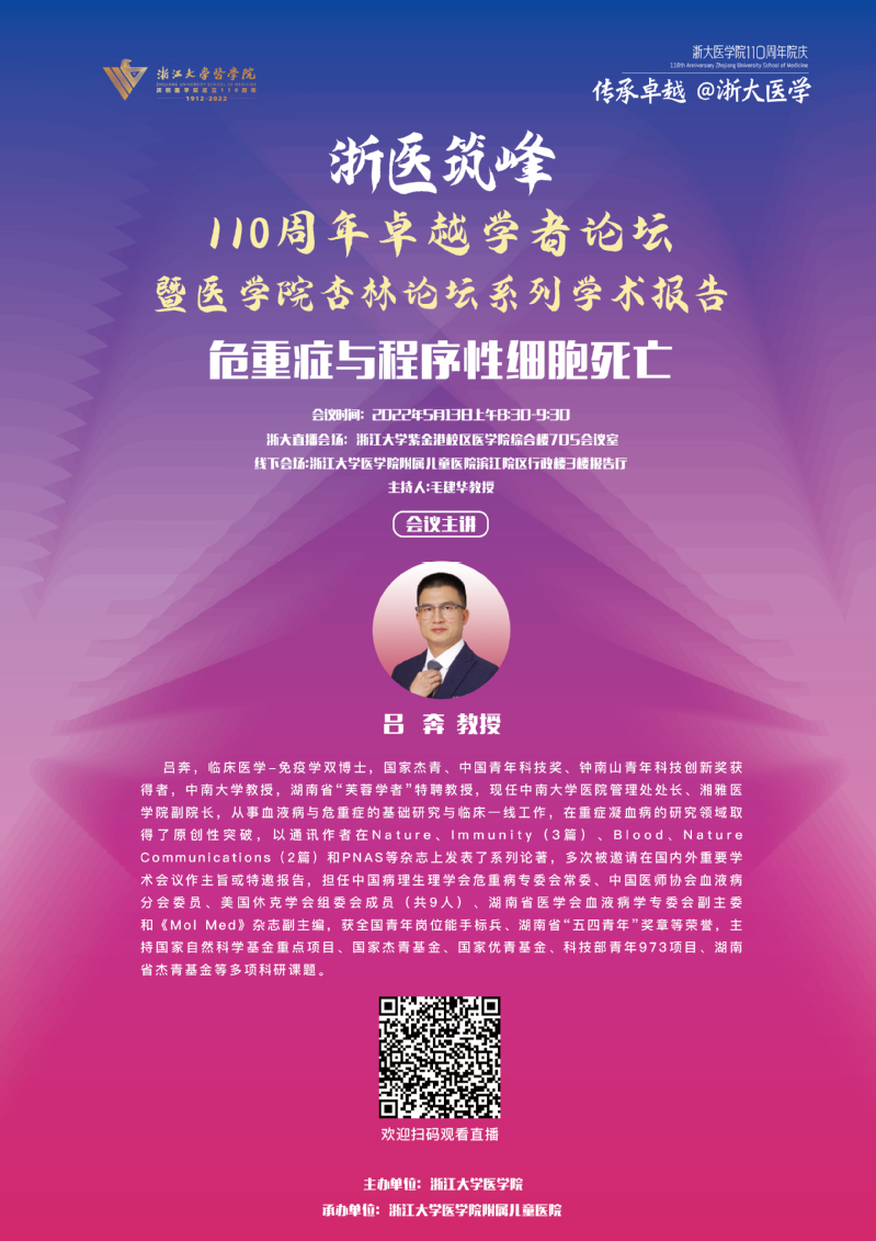 “浙医筑峰—110周年卓越学者论坛”—吕奔教授