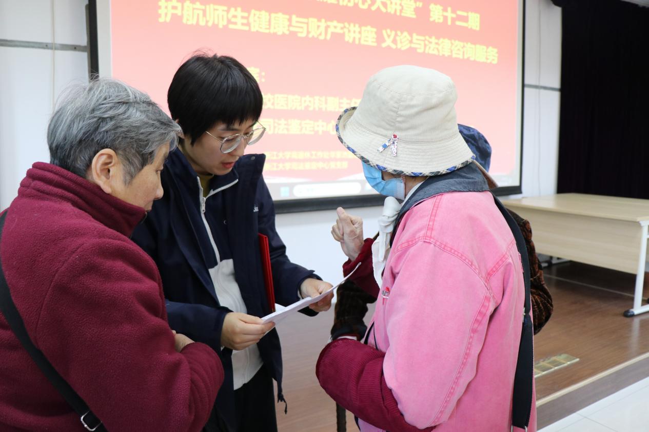 1126日,浙江大学司法鉴定中心党支部联合浙江大学离退休工作处华家池管理服务中心,附属第二医院华家池在职党支部,共同开展“银耀初心大讲堂”第十二期活动,本次活动主题为:护航师生健康与财产讲座及义诊与法律咨询。